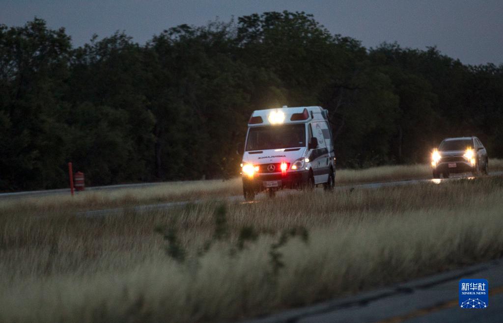 6月27日,一辆救护车从美国得克萨斯州圣安东尼奥移民死亡事件现场驶离。