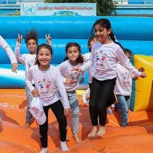 6月27日,儿童在加沙地带杰巴利耶难民营参加夏令营活动。