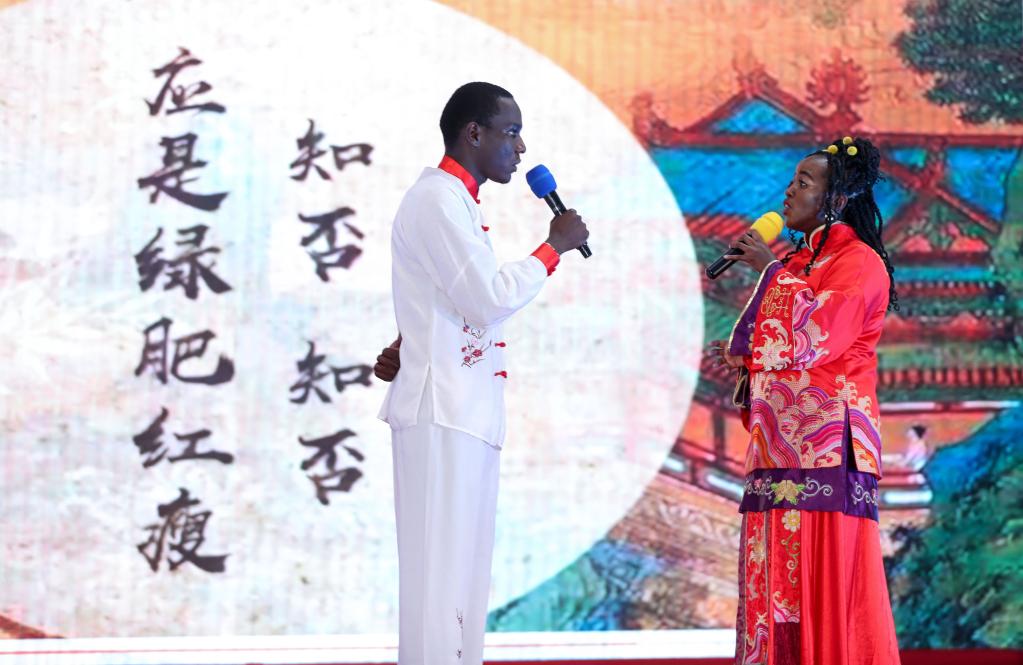 2022年6月24日,在肯尼亚内罗毕大学,参赛选手展示才艺。当日,第21届“汉语桥”世界大学生中文比赛肯尼亚赛区预选赛在内罗毕大学举行。(新华社记者 龙雷 摄)