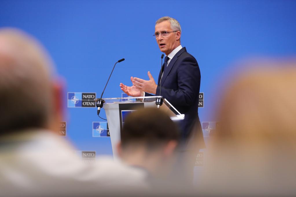 6月16日,在比利时布鲁塞尔的北约总部,北约秘书长斯托尔滕贝格在北约成员国国防部长会议后的新闻发布会上说,北约将在东翼前沿地区部署更多部队,以加强防御和实现快速增援。新华社记者郑焕松摄