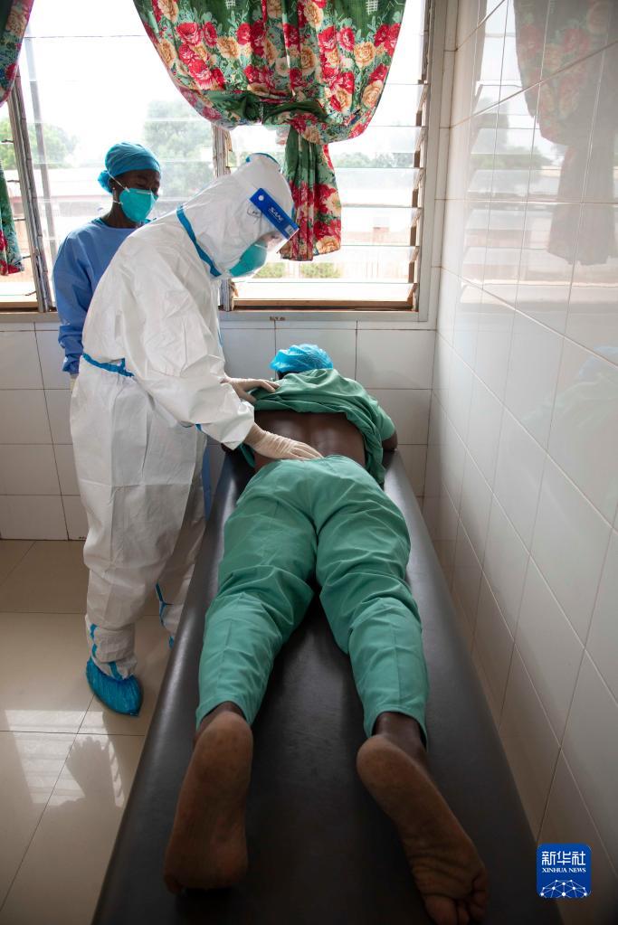 6月9日,在中非共和国首都班吉,中国医疗队医生为病人治疗。