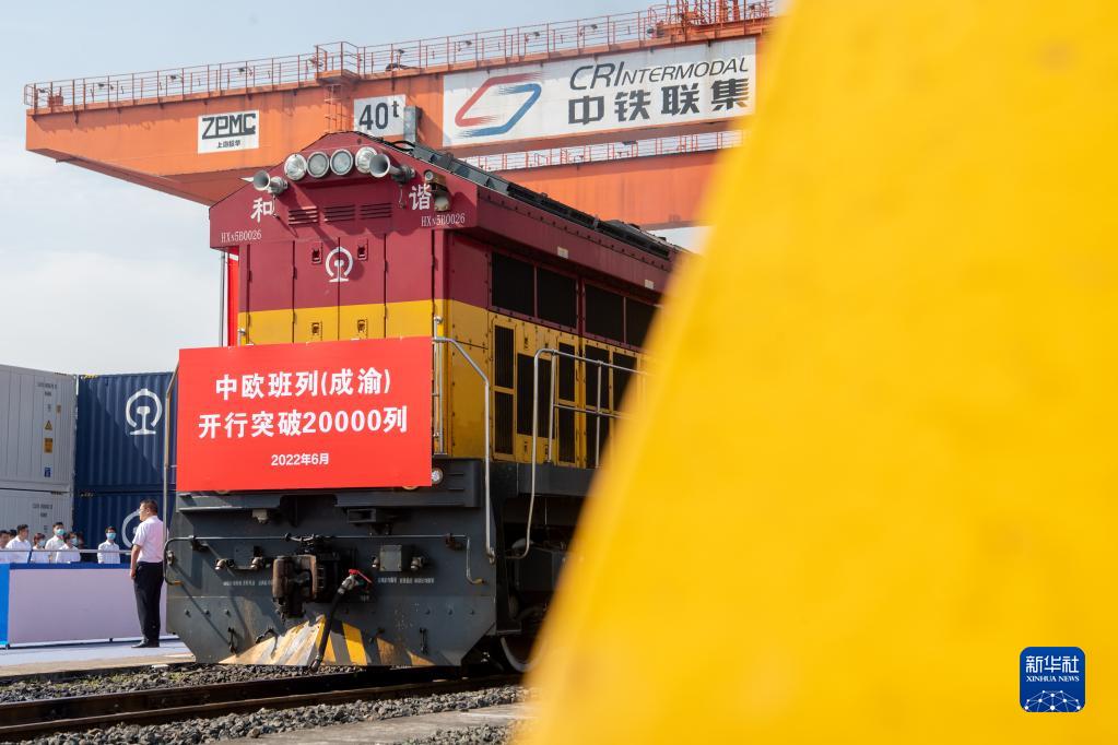 6月30日,中欧班列(成渝)在重庆团结村中心站等待发车。新华社记者 唐奕 摄