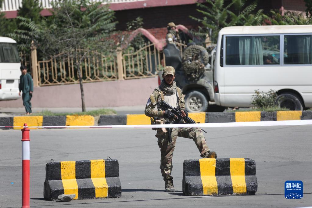 6月30日,塔利班安全人员在阿富汗喀布尔大支尔格会议会场附近警戒。