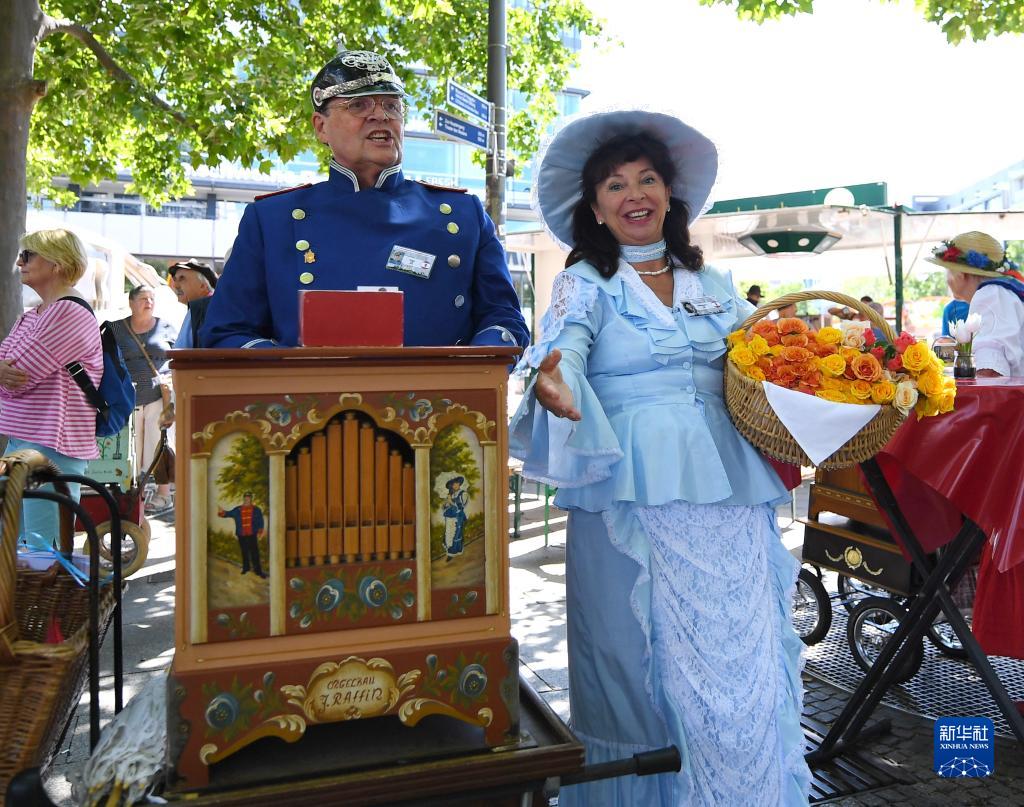 7月2日,人们在德国柏林手摇风琴艺术节上表演。