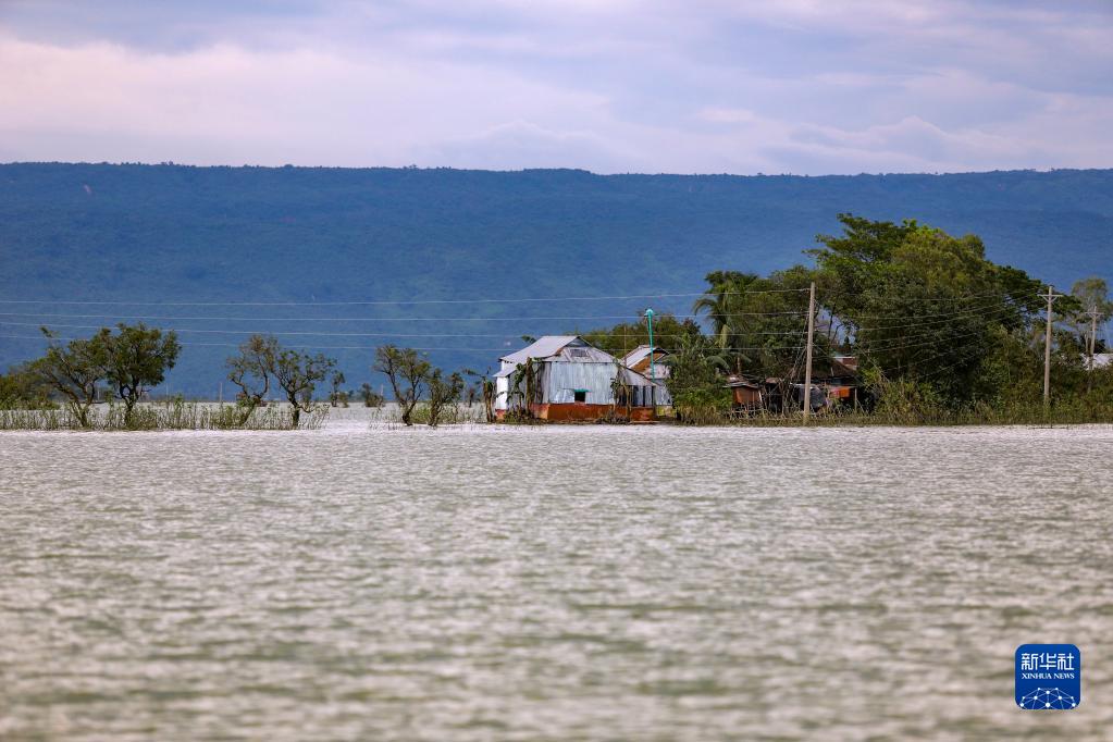 这是7月3日在孟加拉国苏纳姆甘杰拍摄的被洪水包围的房屋。