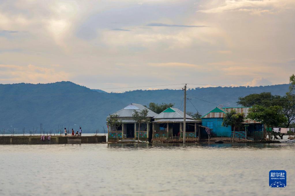 这是7月3日在孟加拉国苏纳姆甘杰拍摄的被洪水包围的房屋。