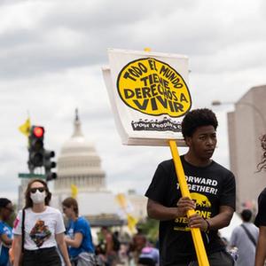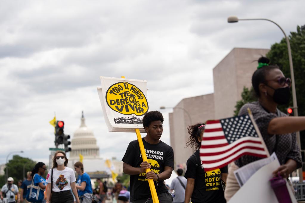 6月18日,在美国首都华盛顿,示威者在国会大厦附近集会抗议种族歧视和经济不公。(新华社记者 刘杰 摄)
