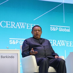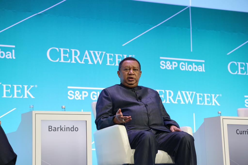 3月8日,石油输出国组织(欧佩克)秘书长巴尔金多在美国休斯敦剑桥能源周会议上发表讲话。新华社记者徐剑梅 摄