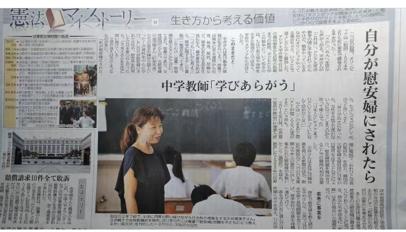 2019年,大阪府吹田市一所中学的骨干教师平井美津子在课堂上讲述了慰安妇史实,并请学生写下感受。当时,就有日媒断章取义地进行报道。日本右翼势力对良心教师的讨伐之声四起。