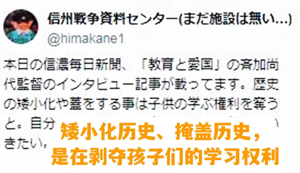 还有人留言:“如果不接受真实正确的历史教育,孩子们将来可能在世界上做出令人深感耻辱的事。”