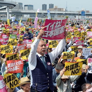 2017年5月3日,日本民众在东京参加集会,纪念“和平宪法”颁布70周年,抗议日本政府的修宪企图。(新华社记者马平摄)