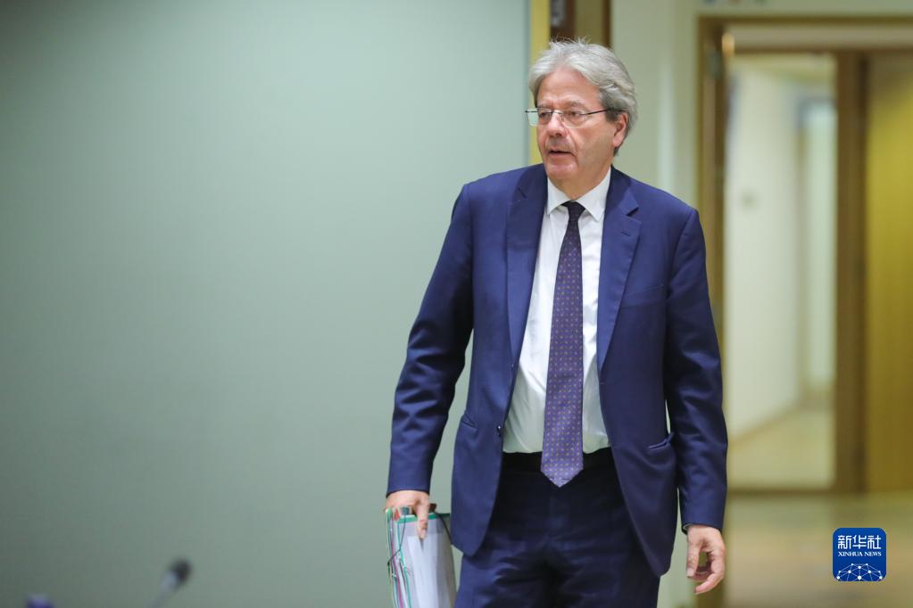 7月11日,在比利时布鲁塞尔,欧盟委员会负责经济事务的委员保罗·真蒂洛尼出席欧元集团会议。