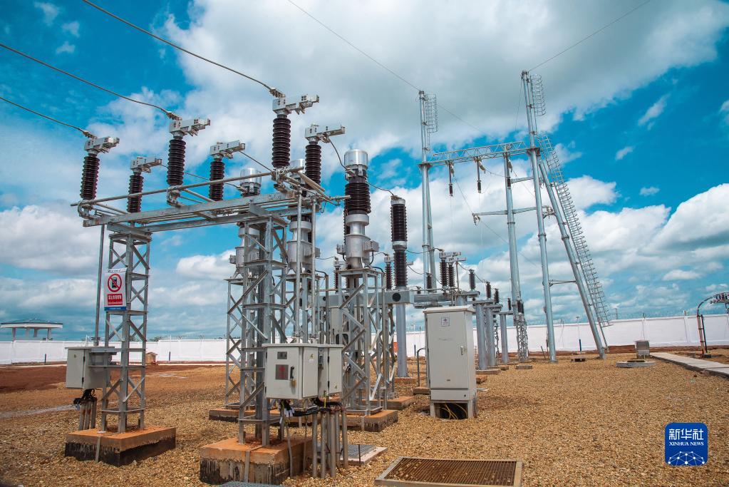 这是6月2日在中非共和国首都班吉附近的宾博市拍摄的萨卡伊光伏电站的升压站。新华社记者罗毓 摄