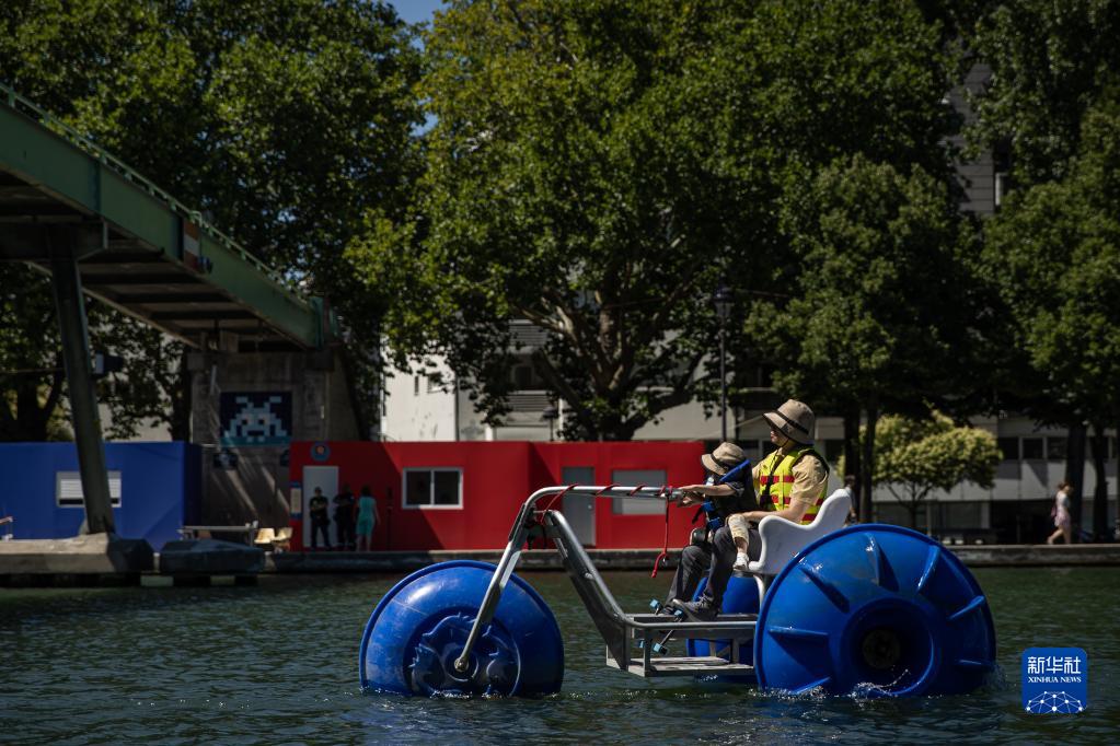 7月11日,在法国巴黎沙滩节期间,人们在维莱特内湖上休闲。