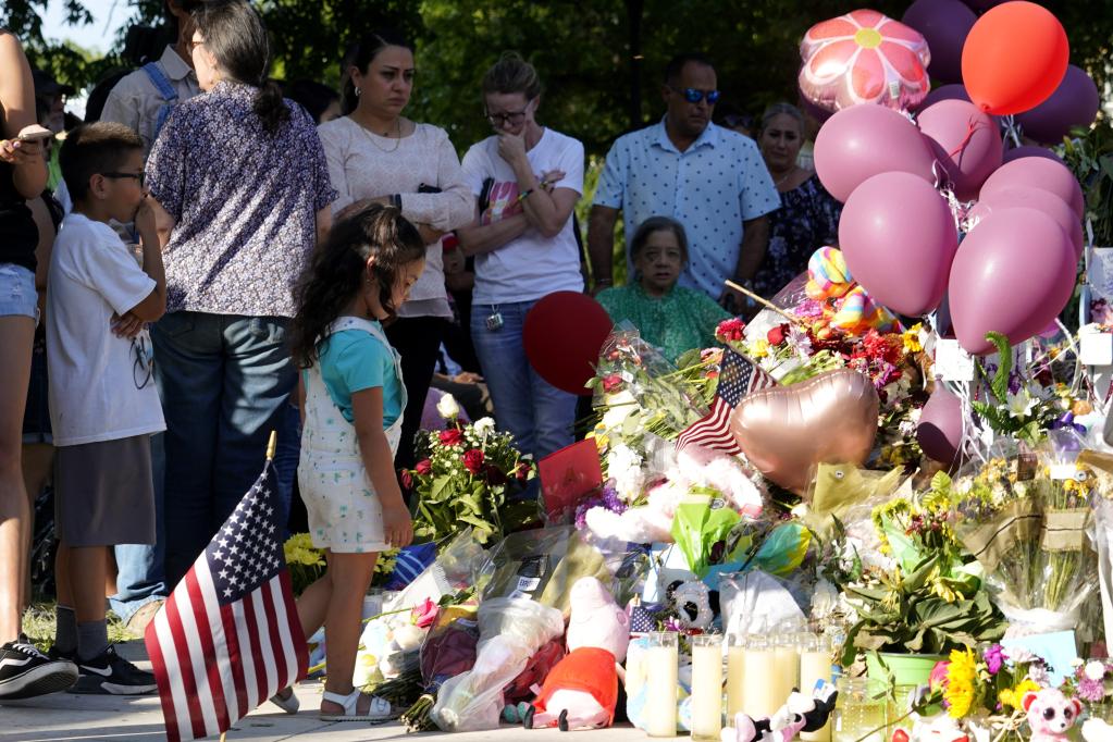 5月28日,在美国得克萨斯州南部尤瓦尔迪市的城市广场,市民哀悼枪击事件遇害者。新华社记者吴晓凌摄