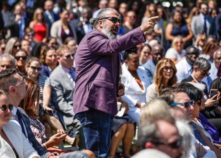 新华社华盛顿7月12日电(记者孙丁)当地时间7月11日上午,美国首都华盛顿烈日炎炎,白宫举办了一场“庆功会”,“庆祝”总统拜登上个月底签署了一项国会通过的应对枪支暴力相关法案。拜登“压轴”登场致辞,正卖力渲染这份法案的影响力,突遭抗议者现场反驳,场面相当尴尬。