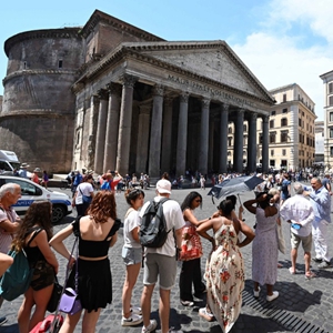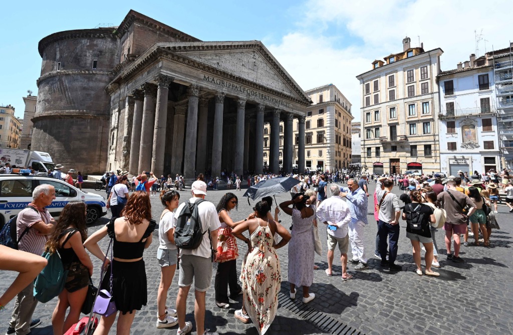 6月17日,人们排队等待进入意大利罗马的万神殿。新华社发(阿尔贝托·林格里亚摄)