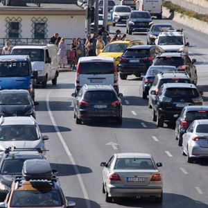 7月13日,汽车在匈牙利布达佩斯市中心行驶。