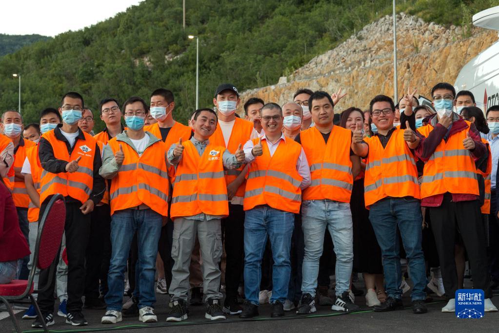 7月13日,在黑山首都波德戈里察,中企员工出席黑山南北高速公路优先段通车仪式。