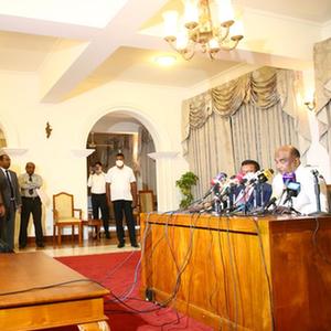 阿贝瓦德纳在当天举行的新闻发布会上说,他已收到总统拉贾帕克萨的辞职信,辞职从14日起生效。根据宪法,推举新总统的程序现在启动。维克拉马辛哈出任临时总统,行使总统职权。