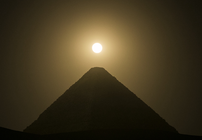 ↑“超级月亮”现身埃及吉萨胡夫大金字塔上空。新华社记者 隋先凯 摄