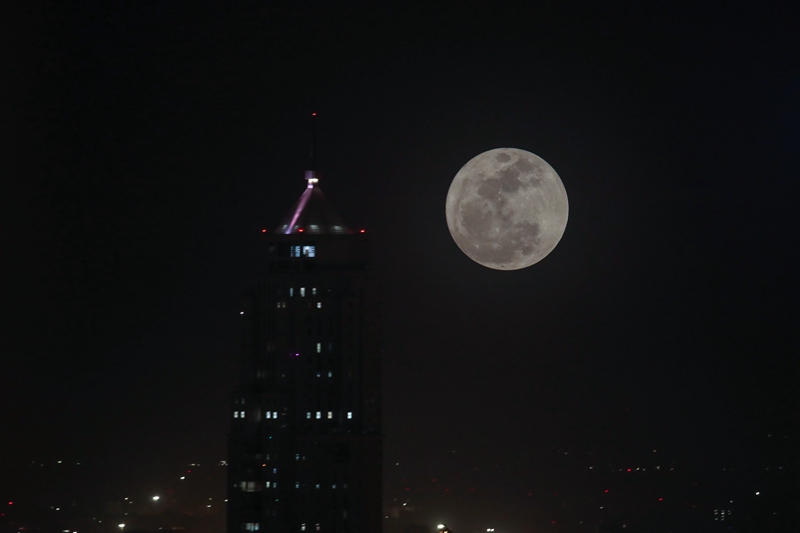 ↑“超级月亮”现身土耳其首都安卡拉夜空。新华社记者 沙达提 摄