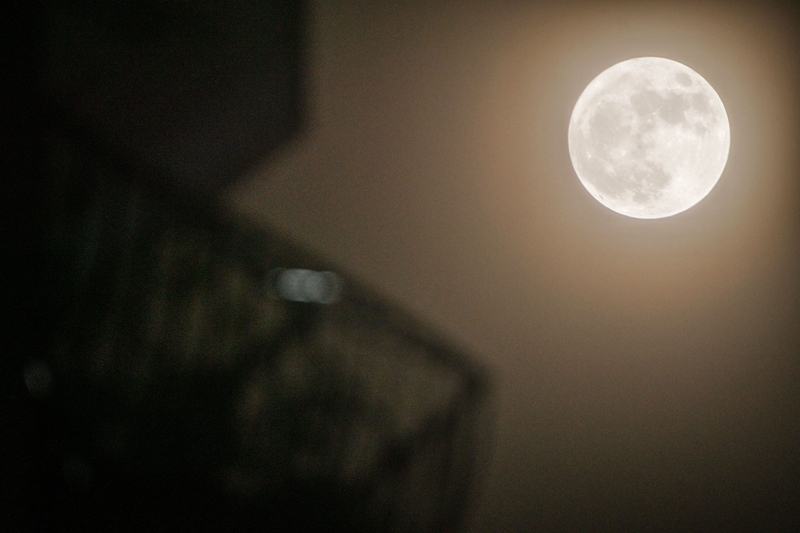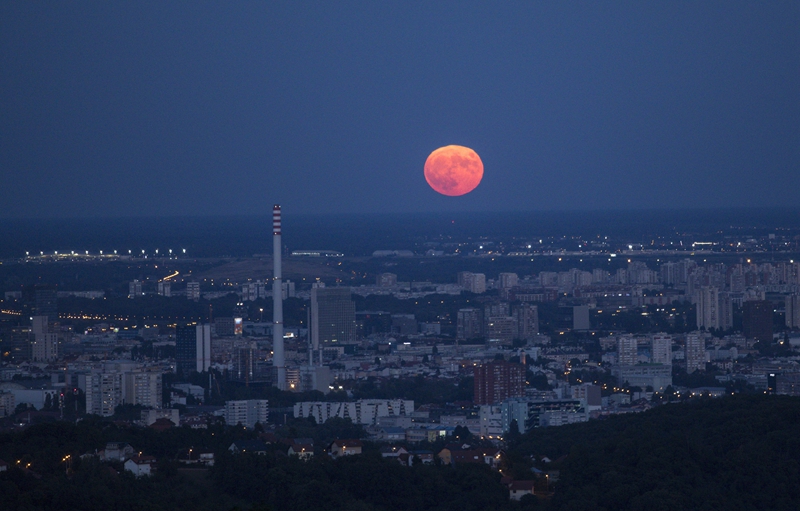 ↑“超级月亮”现身克罗地亚首都萨格勒布夜空。新华社发(Pixsell图片社/巴比奇摄)