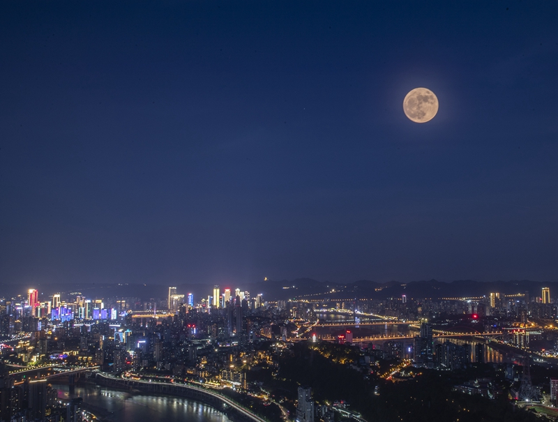 ↑“超级月亮”现身重庆夜空。新华社记者 黄伟 摄