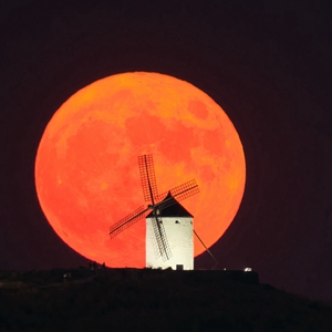 ↑“超级月亮”现身西班牙孔苏埃格拉夜空。新华社记者 孟鼎博 摄