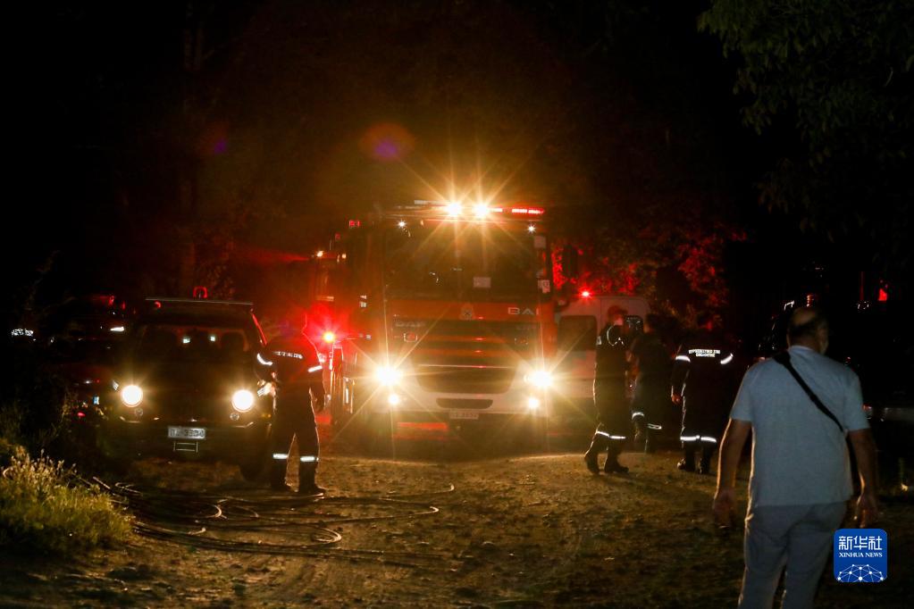 7月17日凌晨,在希腊北部城市卡瓦拉附近,消防车辆前往坠机地点。