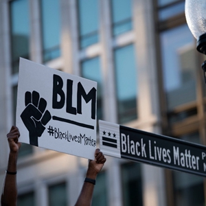 2020年6月8日,一名示威者在美国华盛顿白宫附近高举“黑人的命也是命”的标语。新华社记者刘杰摄
