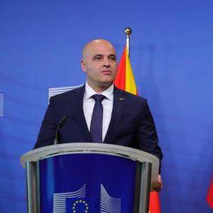 7月19日,在比利时布鲁塞尔,北马其顿总理科瓦切夫斯基在记者会上讲话。新华社记者 郑焕松 摄