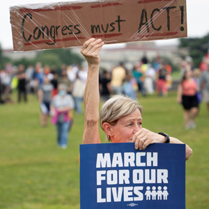 6月11日,在美国首都华盛顿,参加集会人员手持标语牌,要求政府和政客应对枪支暴力问题,加强保护儿童生命安全。新华社发(肖潇摄)