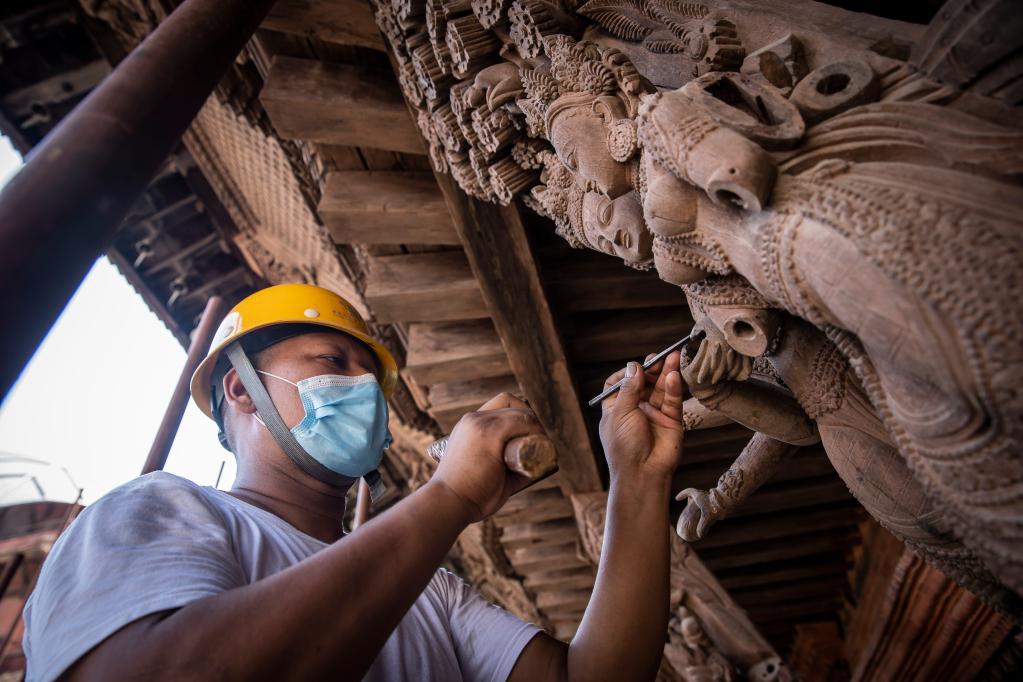尼泊尔大地震后,经中尼双方政府协商,确定了九层神庙修复项目。2017年8月,修复项目正式开工,这是中国在尼泊尔开展的首个大规模文物援外项目。