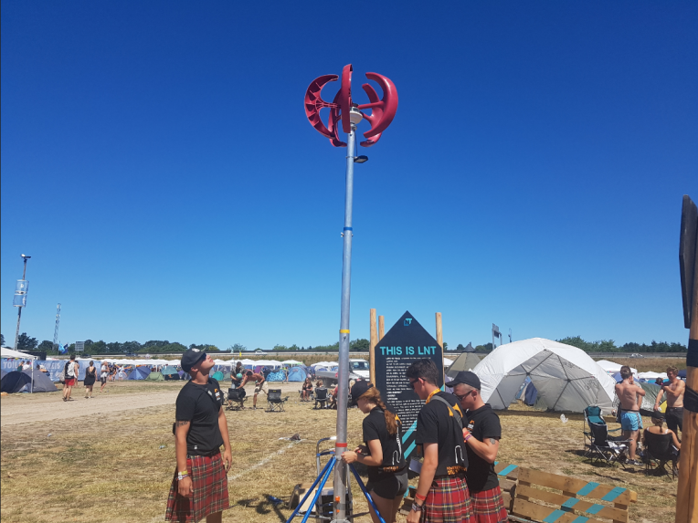 2018年,丹麦科技大学的研究小组在罗斯基勒音乐节现场搭建可移动式小型风力发电机,用于给手机和音箱充电。(图片来源于网络)