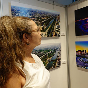 7月21日,参观者在以色列中部城市特拉维夫举办的中以城墙图片展上欣赏图片。