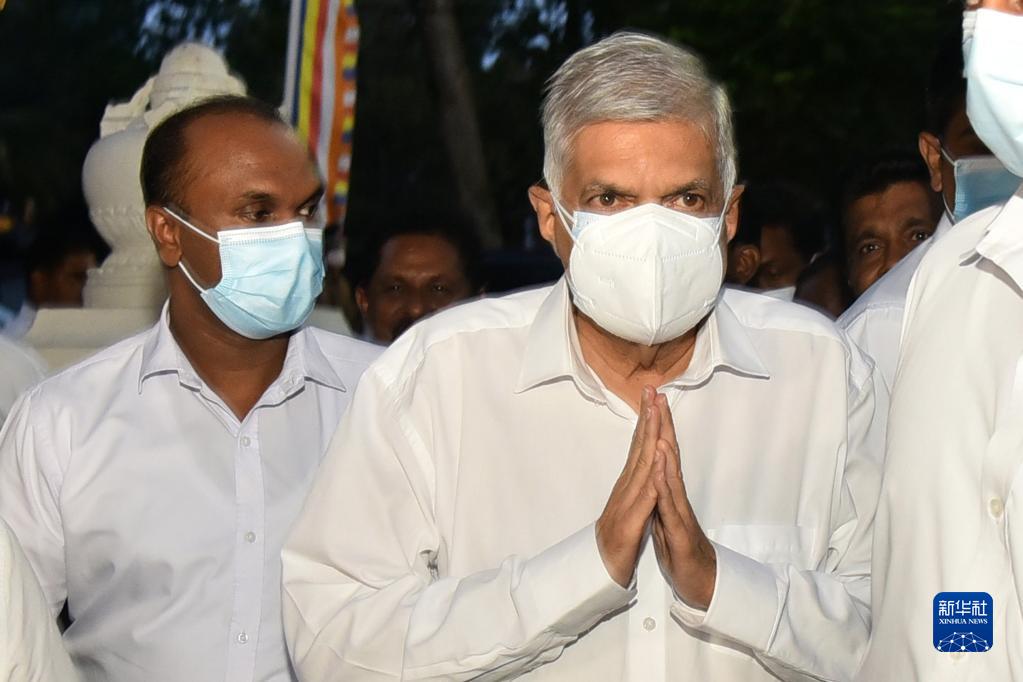 7月20日,在斯里兰卡首都科伦坡,斯里兰卡新当选总统维克拉马辛哈(右)出席当地的一场活动。