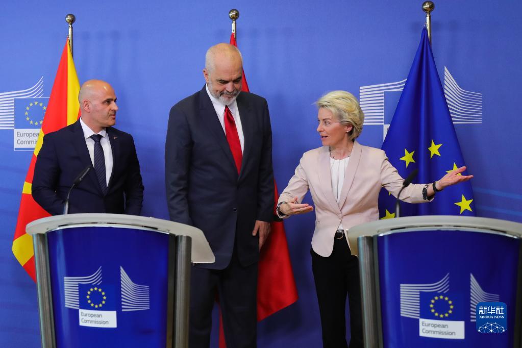 在推迟了近两年后,欧盟19日正式与阿尔巴尼亚和北马其顿开启入盟谈判。当天,欧盟与阿尔巴尼亚和北马其顿在布鲁塞尔召开政府间会议。欧盟委员会主席冯德莱恩、欧盟轮值主席国捷克总理菲亚拉、阿尔巴尼亚总理拉马和北马其顿总理科瓦切夫斯基在会前举行了联合记者会。