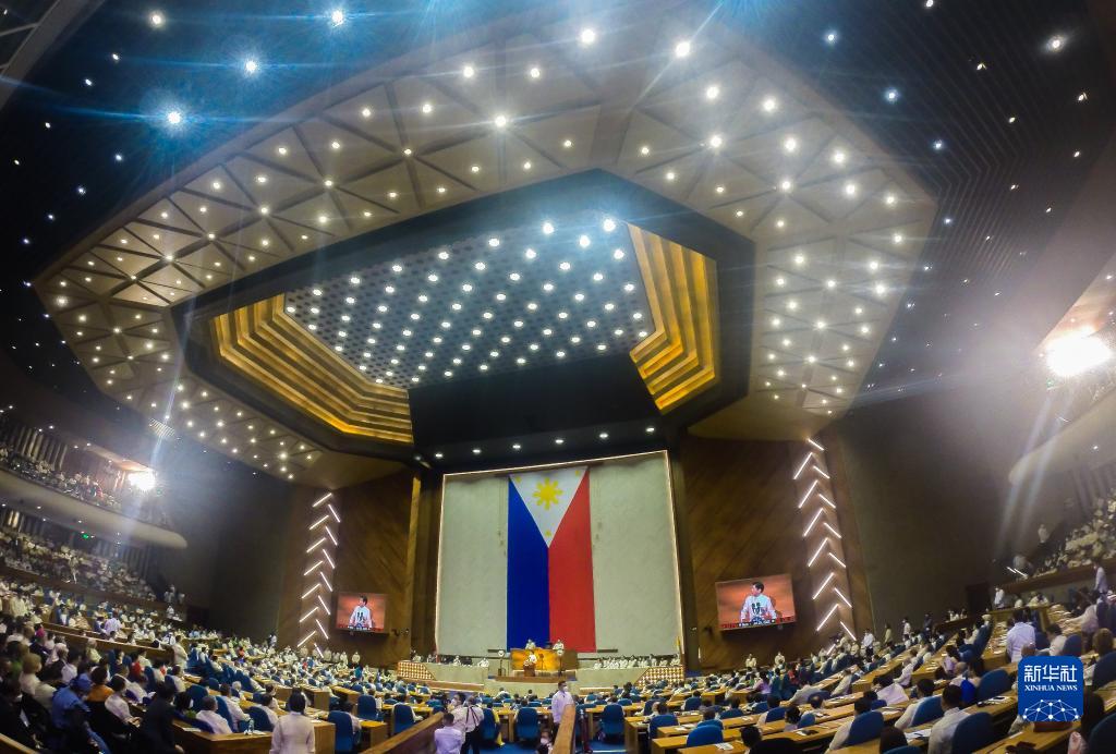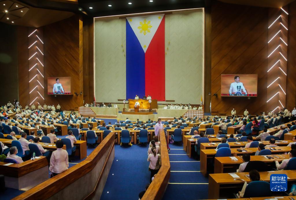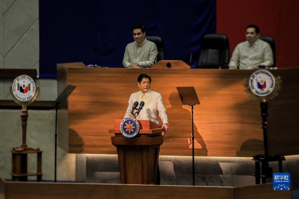 7月25日,菲律宾总统马科斯在奎松城发表国情咨文。新华社发(乌马利 摄)