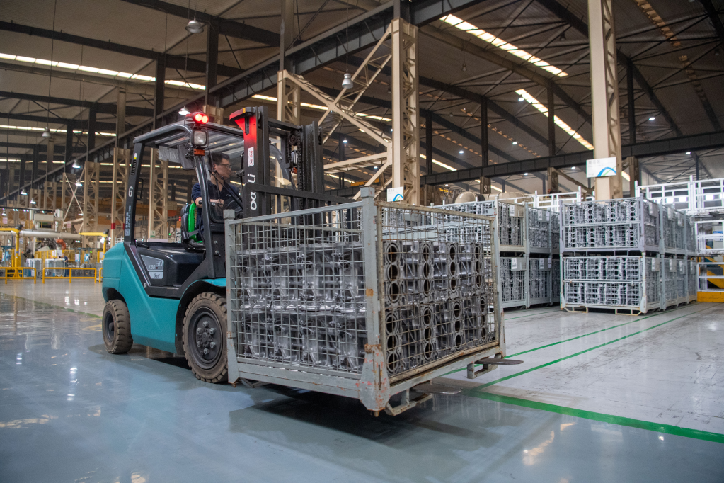 7月20日,在Nemak(诺玛科)重庆汽车零部件有限公司,工作人员在生产车间进行生产作业。新华社记者唐奕摄