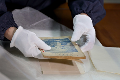 2020年6月23日,中共一大会址纪念馆藏品保管部的工作人员展示张人亚和他的亲属保护的《共产党宣言》中文全译本。新华社记者刘颖摄