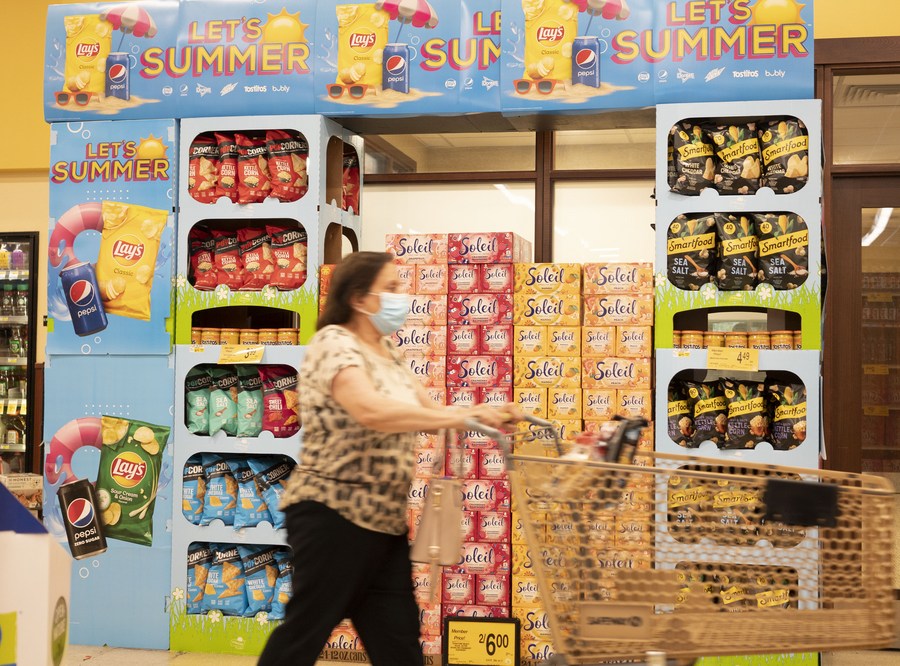 7月13日,顾客在美国加利福尼亚州米尔布雷一家超市选购食品。(新华社发,李建国摄)