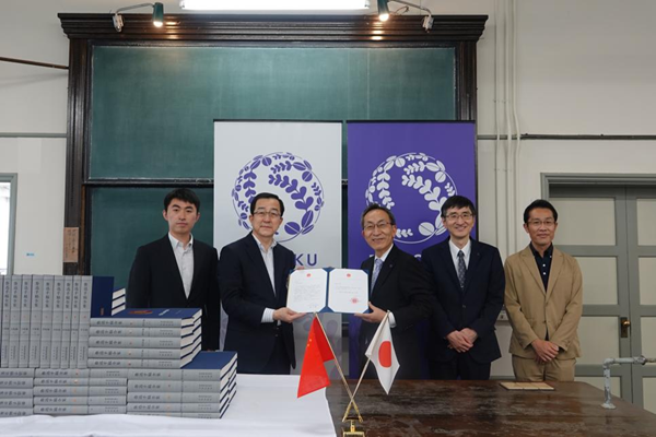 赠书仪式在该校拥有百年历史的“鲁迅阶梯教室”举行,中国驻新潟总领事孙大刚、日本东北大学校长大野英男、副校长植木俊哉等出席,鲁迅文化基金会会长、鲁迅长孙周令飞以视频形式参加。