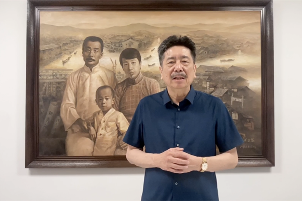 7月26日,鲁迅文化基金会会长、鲁迅长孙周令飞以视频形式出席捐赠仪式并发表致辞。(中国驻新潟总领馆供图)