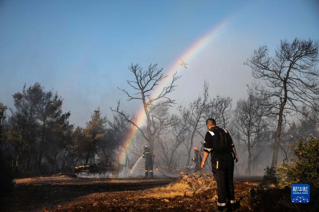7月26日,在希腊雅典附近的曼兹拉,消防员进行灭火作业。
