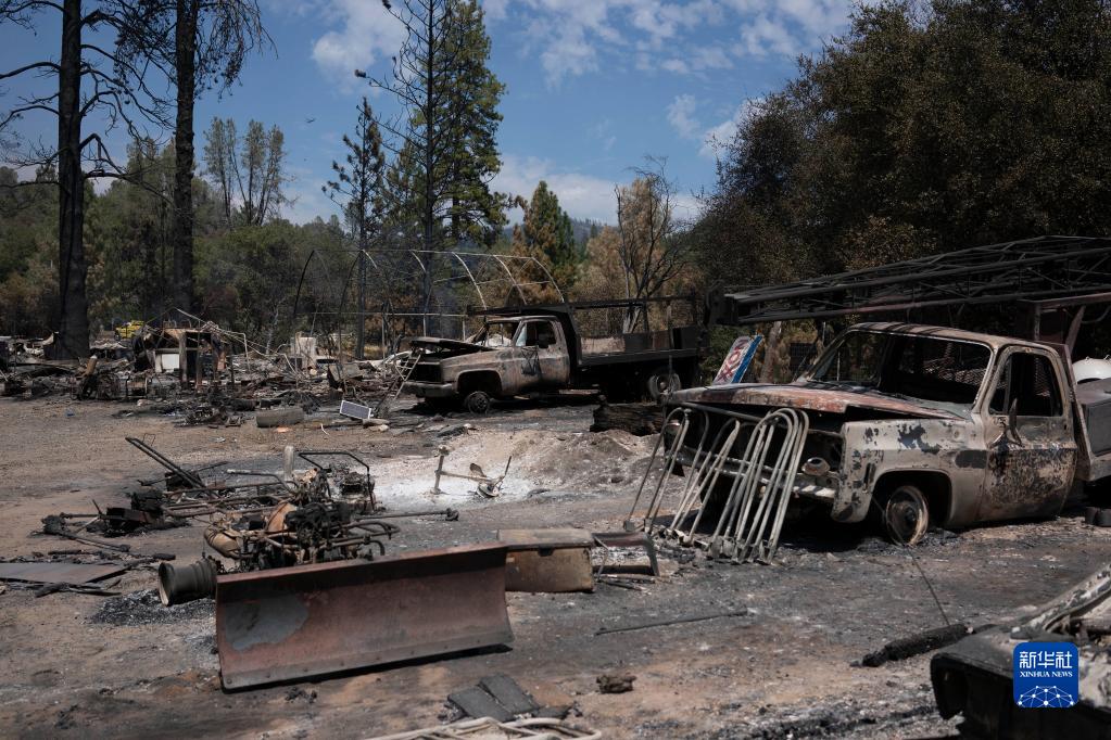 这是7月25日在美国加利福尼亚州马里波萨县拍摄的被烧毁车辆。