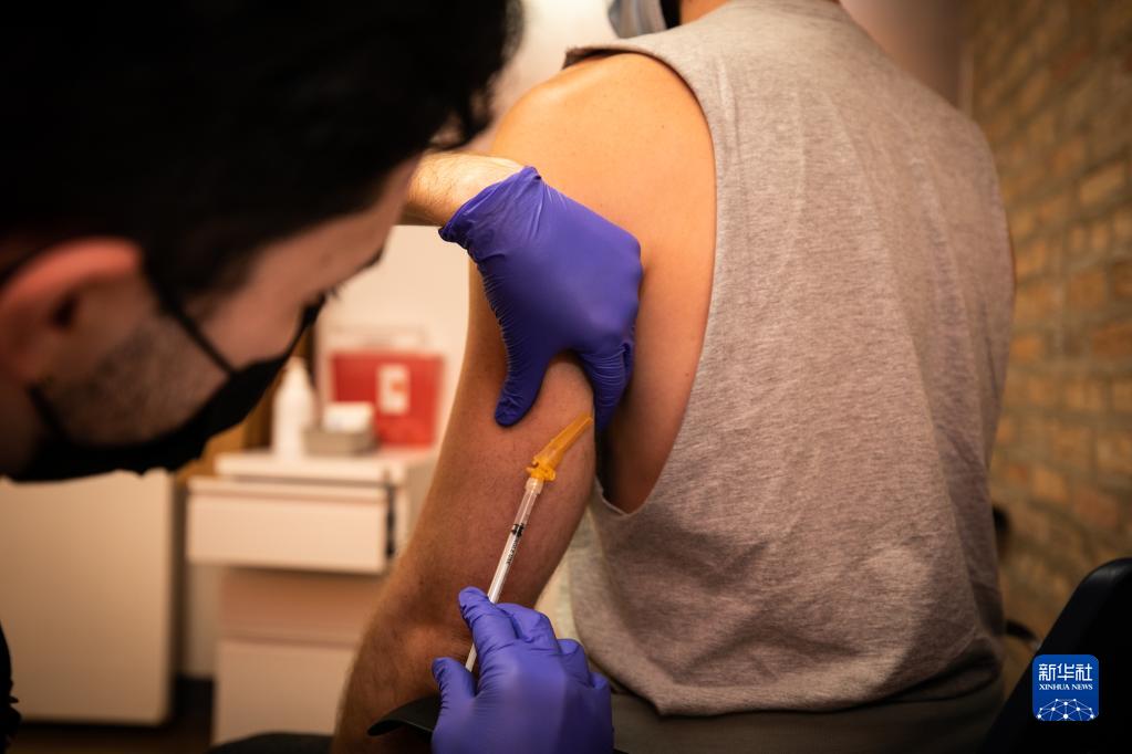 7月25日,在美国芝加哥,医护人员为民众接种猴痘疫苗。