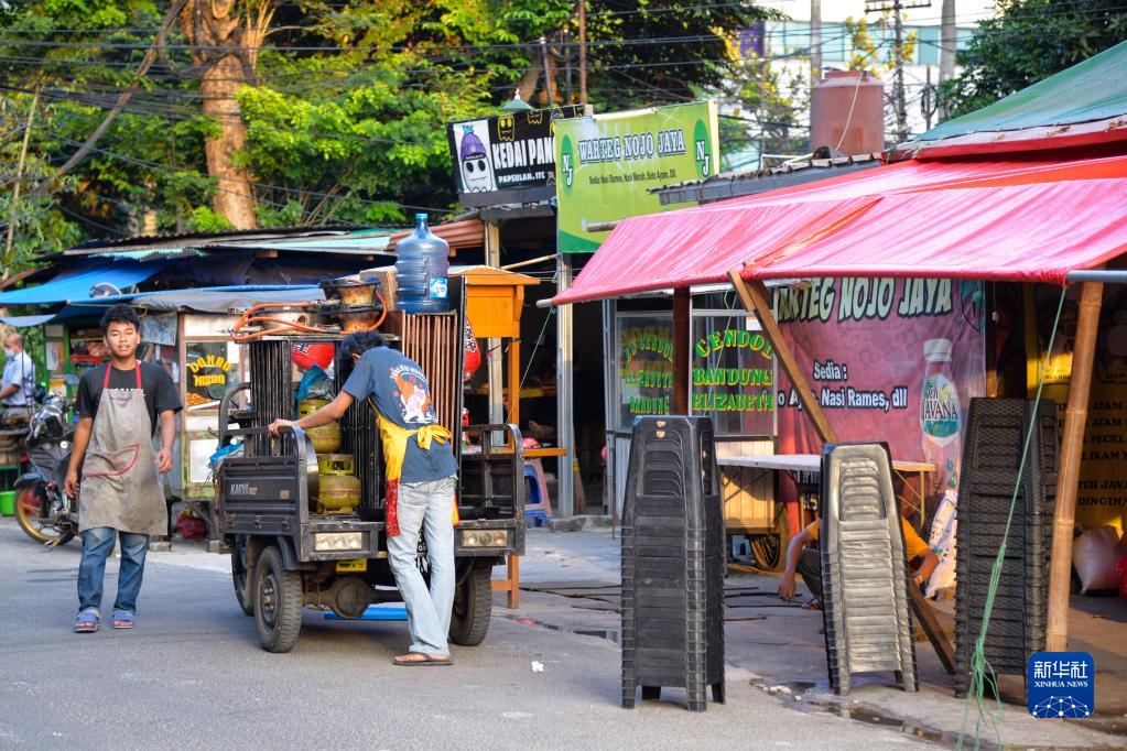 8月1日,商贩在印度尼西亚首都雅加达街头搭建临时摊位。