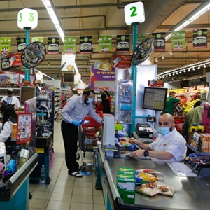 2020年6月24日,人们戴着口罩在以色列莫迪恩一家超市购物。新华社发(吉尔·科恩·马根摄)