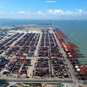 图为广西钦州港集装箱码头(2022年7月9日摄,无人机照片)。(新华社记者张爱林摄)
